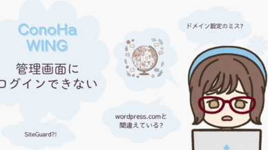 blog ConoHa WINGでWordPress管理画面にログインできない時の対処法【原因別まとめ】 はじめにサイトのURLが正しく設定されていないと、そもそもログイン画面が表示されないことがあります。確認ポイントConoHa WINGのコントロールパネルで、ドメインが正しくサイトに割り当てられている... 2026.04.16 blog